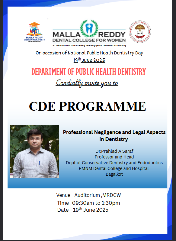 Malla Reddy Dental College for Women (MRDCW) is a private dental college established under Chandramma Educational society in the campus of Malla Reddy Vishwavidyapeeth(Deemed to be University)Â located at suraram, ranga reddy district hyderabad. The Institute is 20 kms from Secunderabad and Hyderabad Railway stations. This is well connected by buses from different places. The Medical College Hospital serves the rural population situated in and around villages. The College campus is vast provided with all the facilities to make the students comfortable while learning.